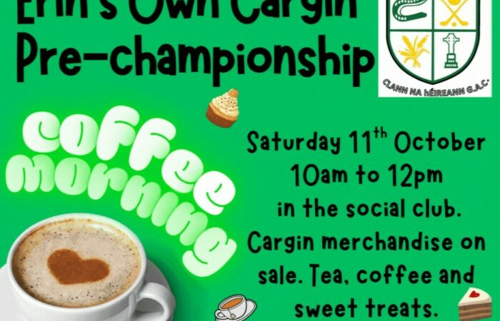 Welcome to Erin’s Own GAC Cargin club website and one of the oldest GAA clubs in Co. Antrim. A special welcome to everyone associated with Cargin, especially those of you who are living outside the parish and those of you who are new to our parish. We very much value the support of you all.