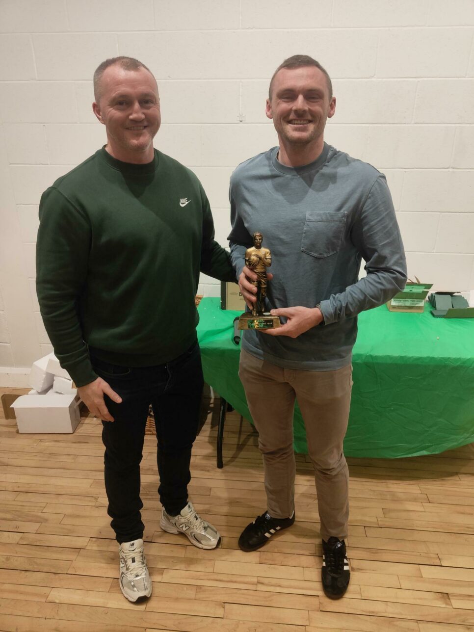 Senior manager Ronan Devlin presents James Laverty with the senior player of the year award for 2025