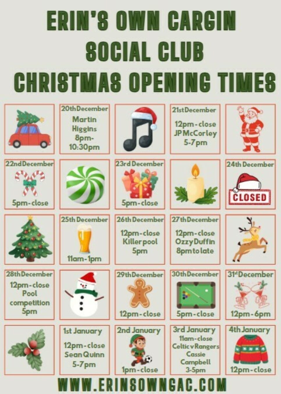 Thursday 1st January - Open 12pm to close. Sean Quinn 5pm to 7pm.